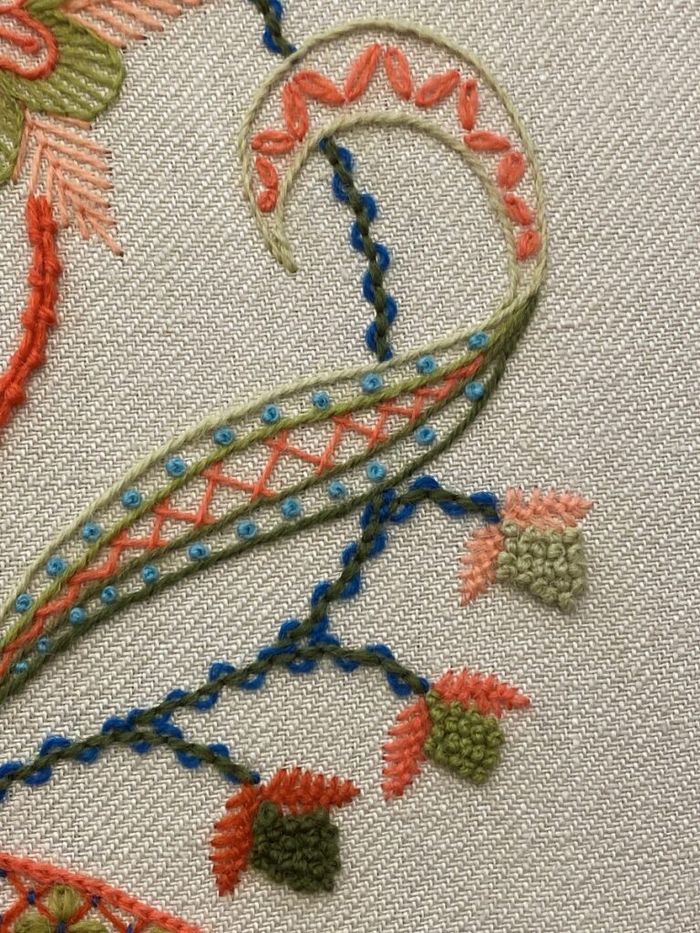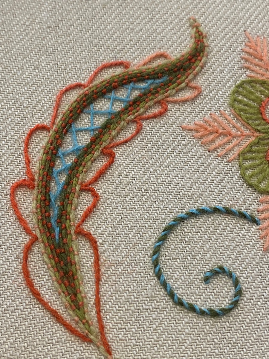 This class is perfect for anyone who is new to Jacobean or those who would like to improve their technique. It explores a number of the most commonly used stitches for crewel work. The kit is worked in the traditional mediums of crewel wool to linen twill fabric in a controlled colour palette and is inspired by the tree of life.