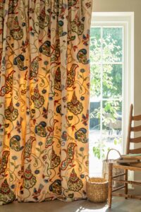 The resulting fabric, Janwardar (pronounced JAN-war-dar), means ‘bird design’. It is a joyful, colourful pattern, ideal for curtains, blinds, cushions and upholstery across the home.