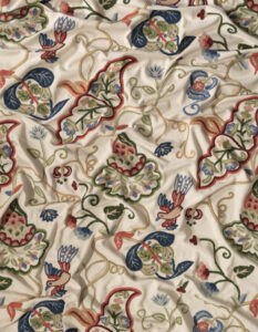 We are delighted to introduce ‘Janwardar’, the result of a collaboration between the Royal School of Needlework Archive and Welland & Wye, a boutique producer of crewelwork fabric for interiors.