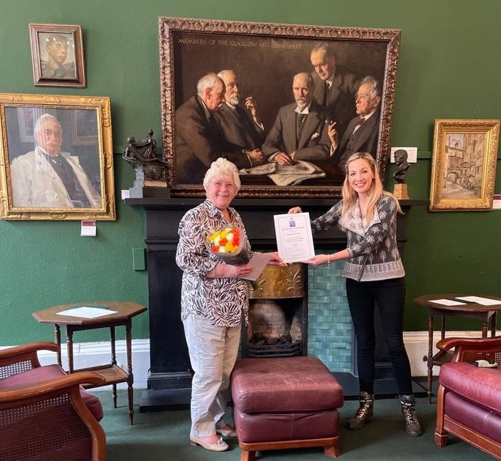 Meanwhile at RSN Scotland, RSN Tutor Helen McCook presented Graduate Elizabeth Hay with her Certificate at The Glasgow Art Club, where we also teach the course.