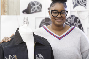Echoes of my Ancestors is a collection of caps and canvas jackets inspired by streetwear, by hand embroiderer, Olaitan Onibuje. The main themes draw on her personal history, culture and heritage that have formed her identity.