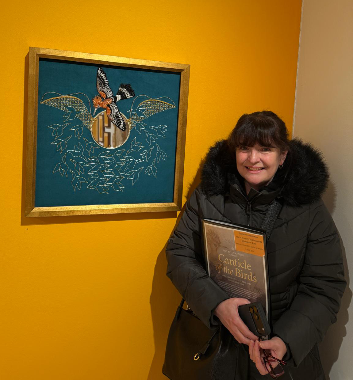 AKC103 Stylised Goldwork Hoopoe Bird inspired by Canticle of the Birds at the Aga Khan Centre, London. RSN Experience Class