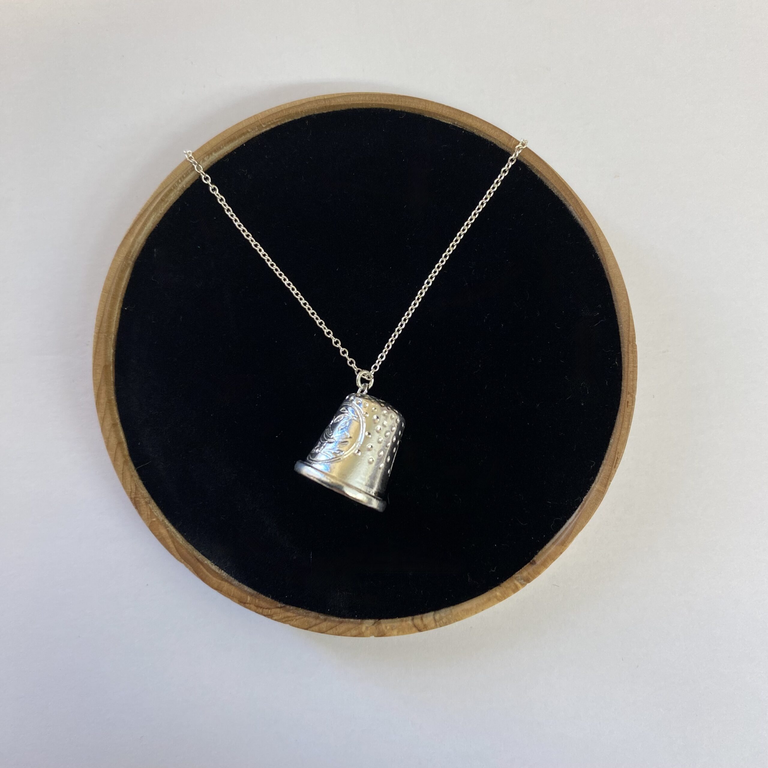 Whether you love mending things or the art of embroidery, this antique inspired Thimble Necklace engraved with an intricate bird design is an almost life-sized homage to a sewing essential.