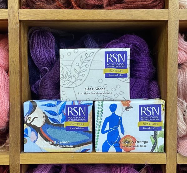 The design from the RSN Paint Room from our early years is ‘Beez Kneez’ with a touch of beeswax and honey, scented with a spicy blend of cinnamon, clove bud, geranium, nutmeg and West Indian bay. The Silk Shaded Lapwing is ‘Cedar & Lemon’ containing avocado oil and scented with lemongrass, itsea cubeba (mountain pepper) and cedarwood and The Lost Garden design, by RSN Degree Graduate Livia Papiernik, is ‘Cardamom & Orange’.