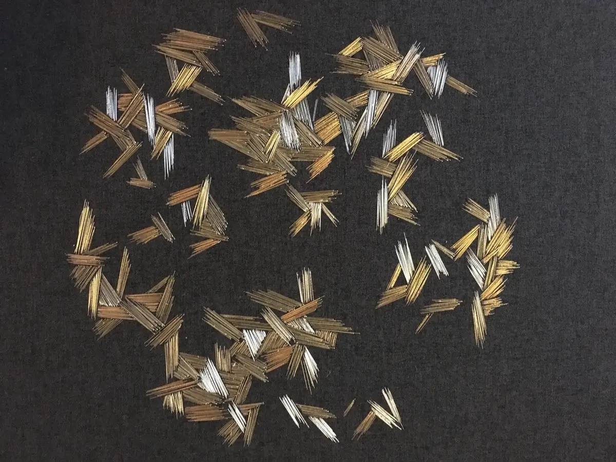 Throughout the course, you will be guided step by step through the process of understanding and mastering stitch techniques, the handling of materials and design development. Beginning with focused sampling exercises, you will explore how angle, density, and stitch length influence the way light interacts with the metal threads, and use this to create your own small, unique artwork.