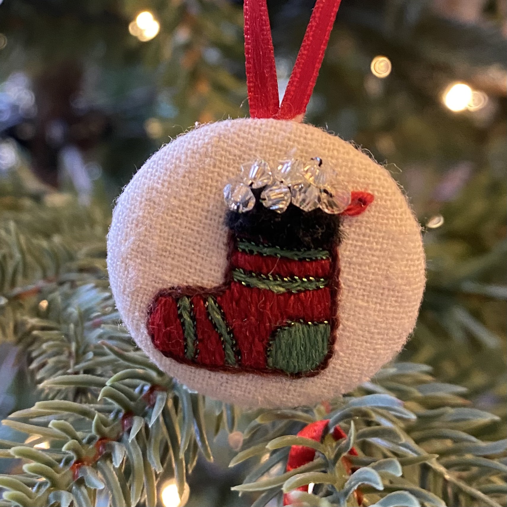 Beautiful Stocking brooch/decoration kit with a seasonal flavour from Helen Stevens. Presented in a sturdy and stylish grey box and contains a spiral bound booklet which shows you how to complete your brooch, with text and very clear colour photographs. The kit includes all materials and your finished brooch will be approximately 3cms in diameter. A perfect gift for any crafty person in your life or even a treat for you.