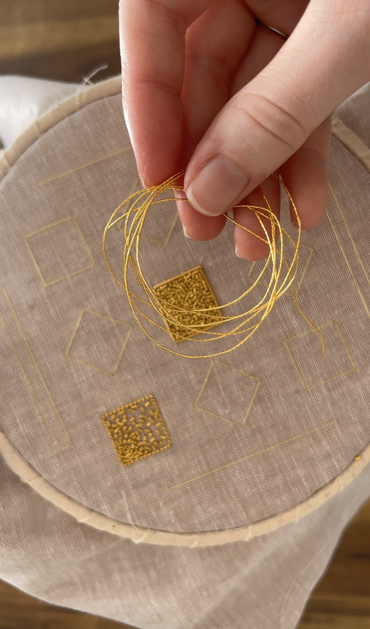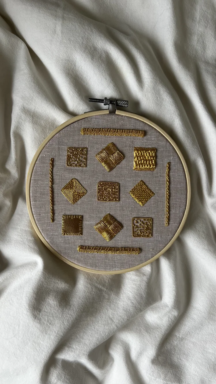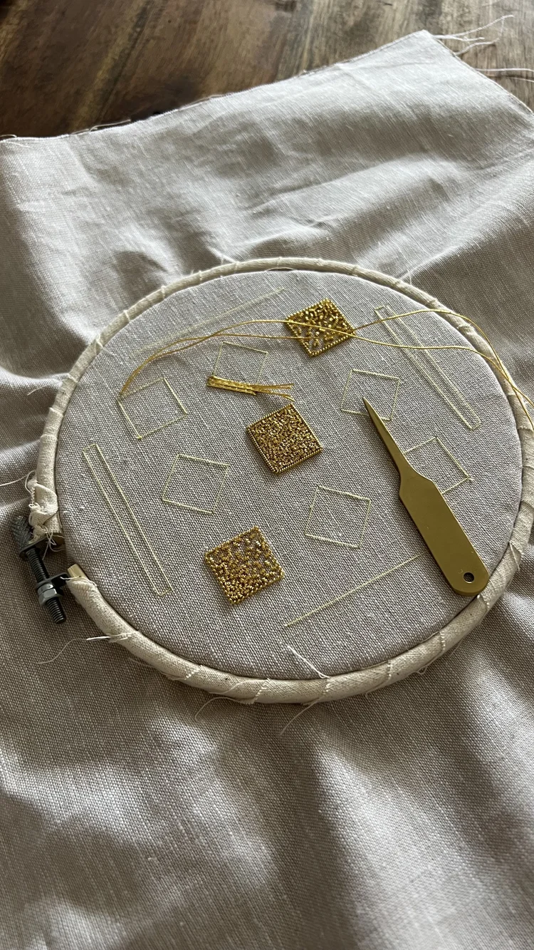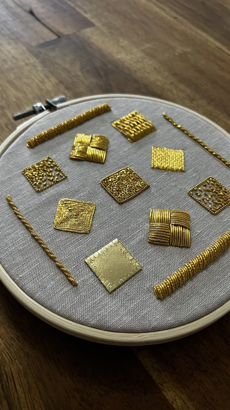 Michelle Agnew is an award-winning artist specializing in sculptural goldwork embroidery. Trained at the Royal School of Needlework, she transforms traditional embroidery into a three-dimensional art form through impressionistic goldwork. Michelle’s work merges the ancient craft of goldwork with contemporary techniques, recontextualizing it within modern frameworks. Her approach aims to celebrate the medium’s versatility and honour the craft’s rich heritage while expanding its boundaries, creating visually striking and conceptually engaging artworks.