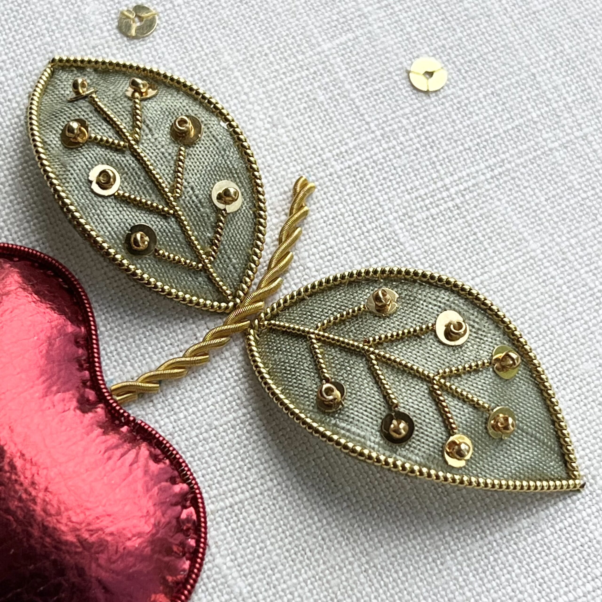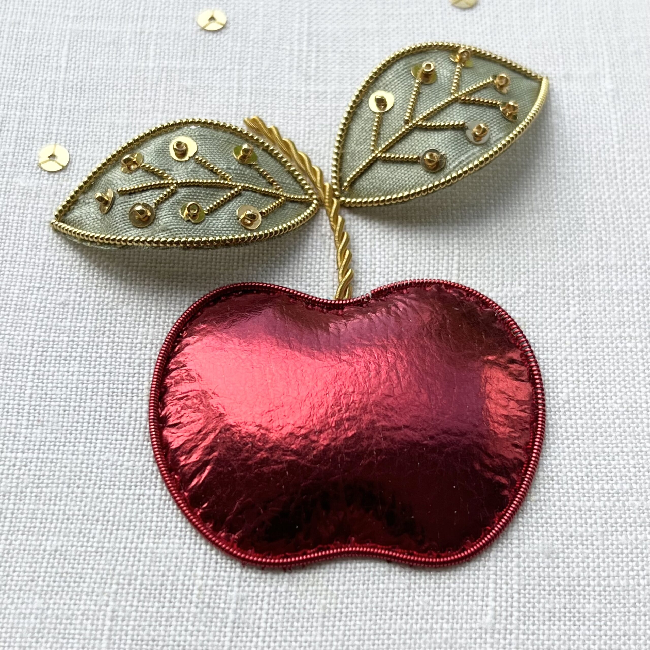 This apple embroidery project was inspired by and designed as part of my Goldwork kit, The Golden Pear.