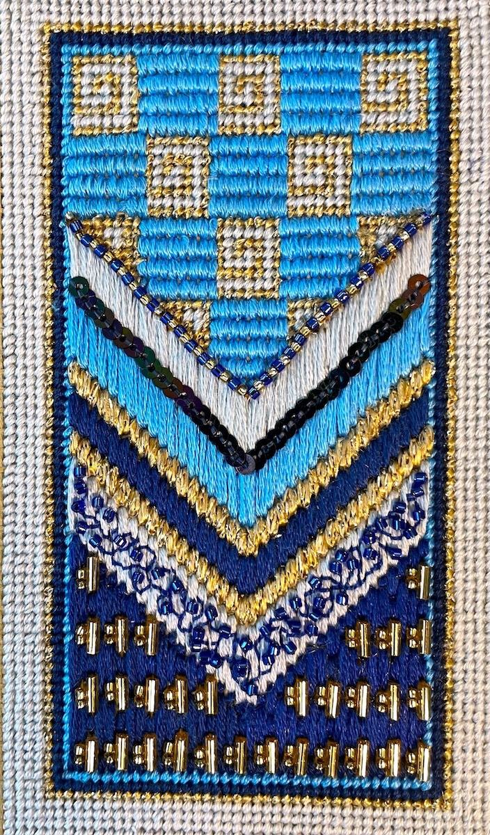 Students will be introduced to the hand embroidery techniques of Canvas work and Beadwork. You will spend the morning creating a background of stitches using different coloured stranded cotton and metallic thread, focusing on Tent Stitch, Florentine Stitch and Vertical Milanese Stitch. In the afternoon session you’ll move on to richly embellish their work using a selection of beads, threads and sequins.