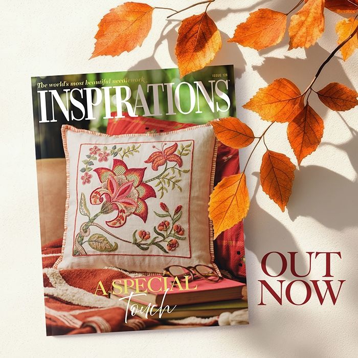We feature the second in a series of three goldwork knot gardens by Tania Cohen along with beautiful projects utilising a variety of embroidery techniques including crewel, whitework, beading, metal thread and surface embroidery.