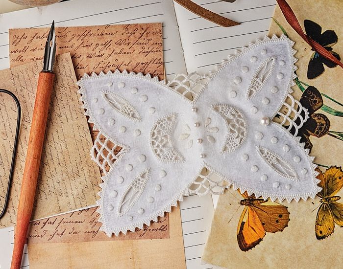 Pretty butterfly needlebook worked with Hedebo embroidery.