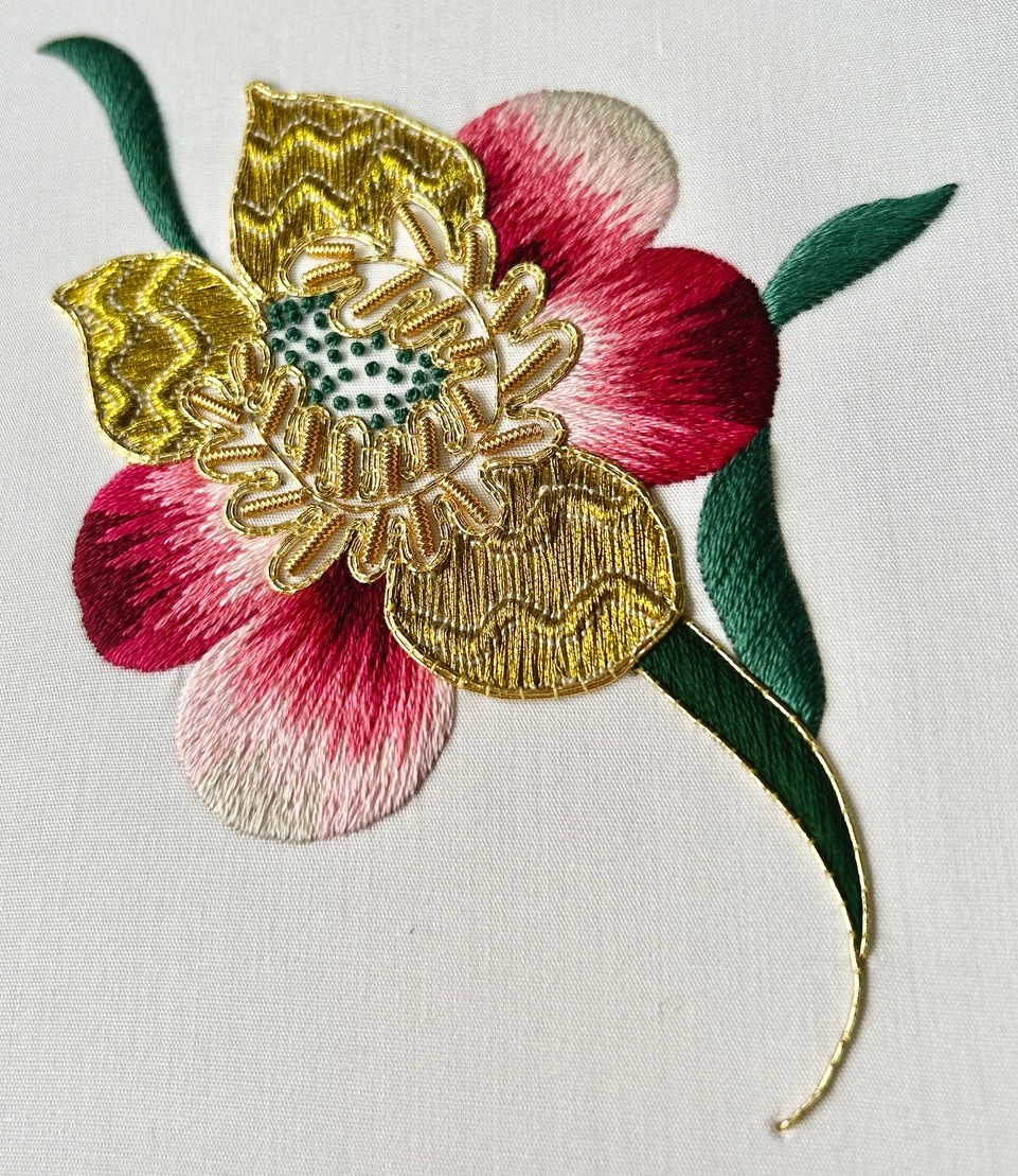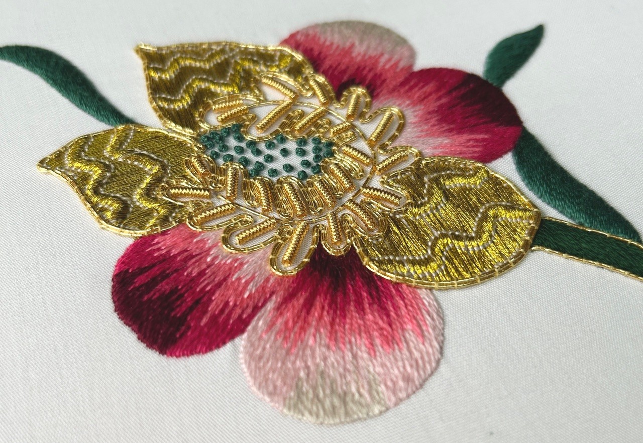 MH104 Gold and Silk Shaded Flower inspired by an 18th century embroidered dress at Mapperton House, Dorset (Experience Class)