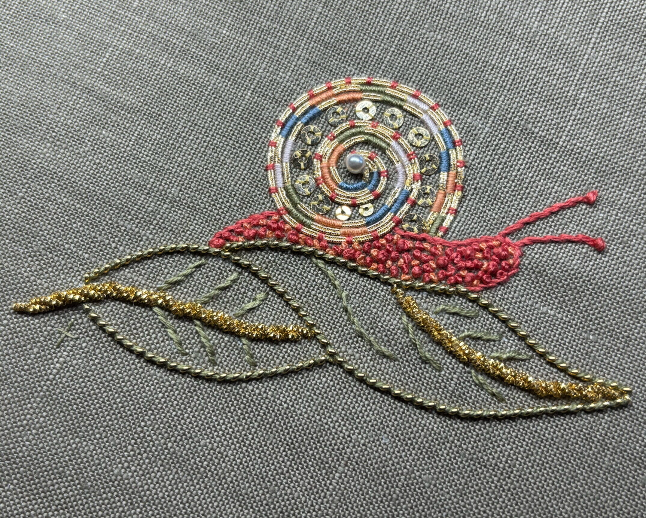 ONL25710 Goldwork: Or Nué Snail