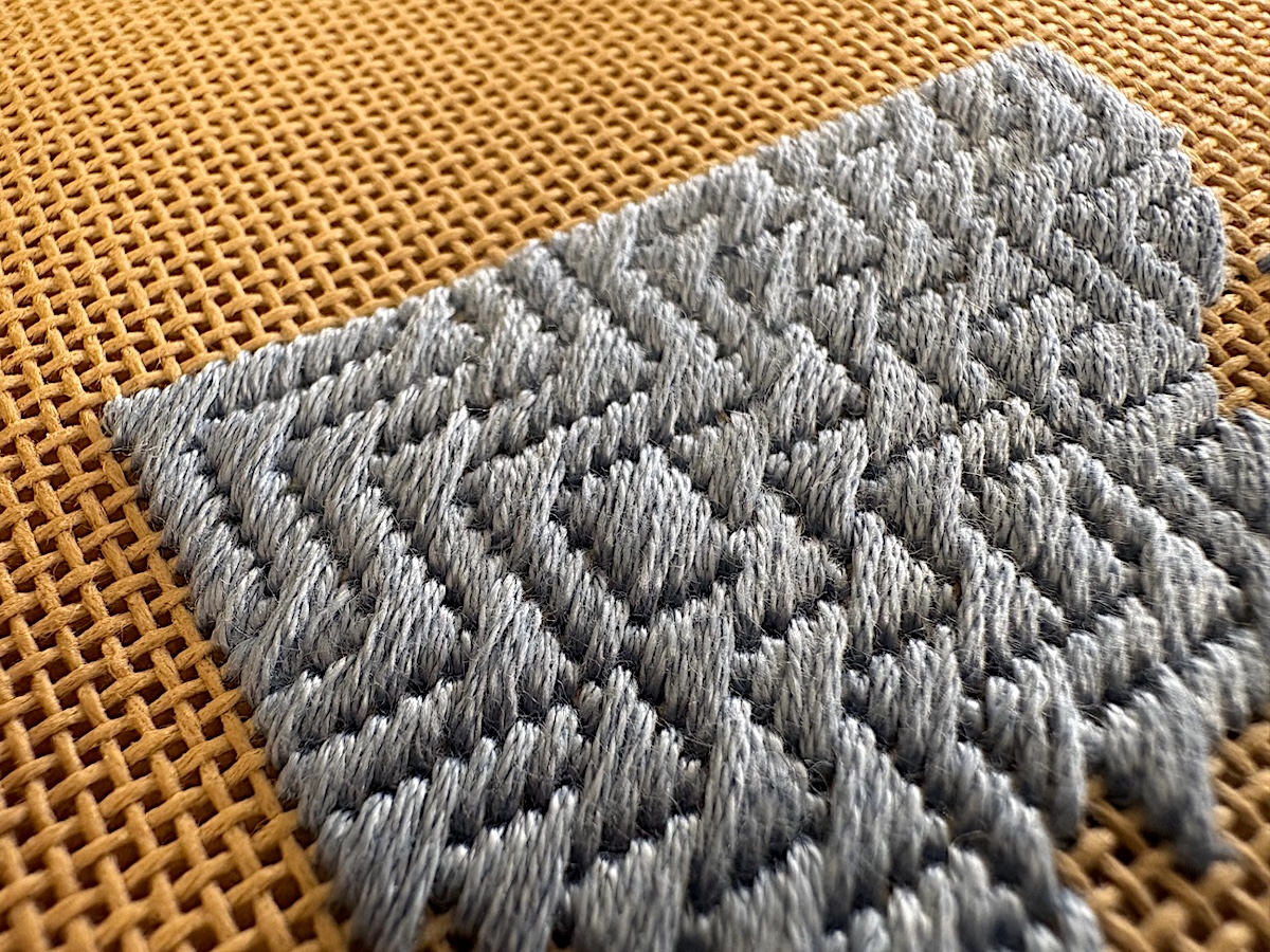 - Canvas stitches – we will look at how we form a number of different stitches. How do we compromise the varying stitches to create a hard edge to the form.