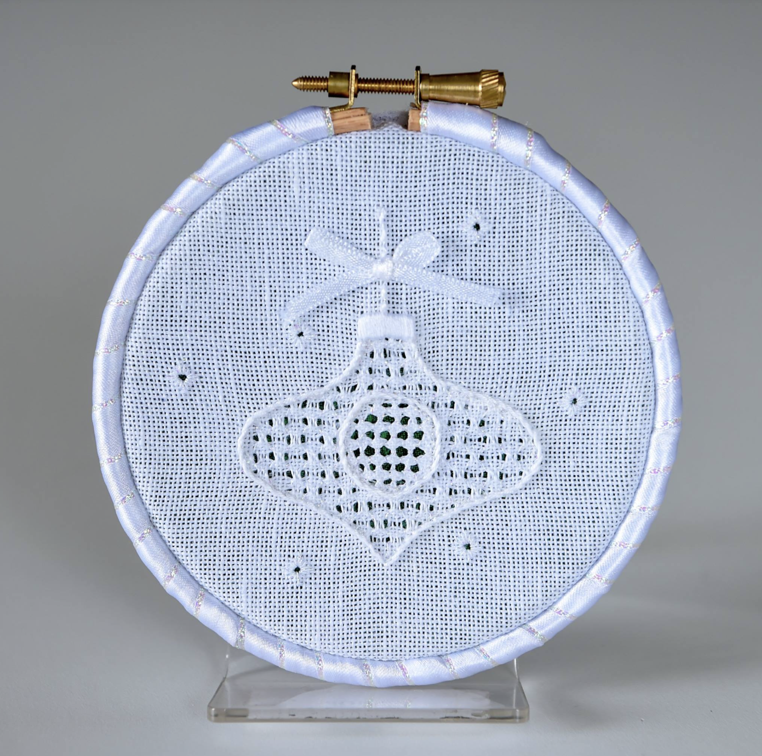 This beautiful design introduces you to the Whitework technique of Pulled Thread, this kit will show you how to embroider and construct your own sparkly Christmas bauble to hang on the Christmas tree. Using sparkly, white thread and a selection of Pulled and Surface Stitches the manageable instructions will guide you through this technique
