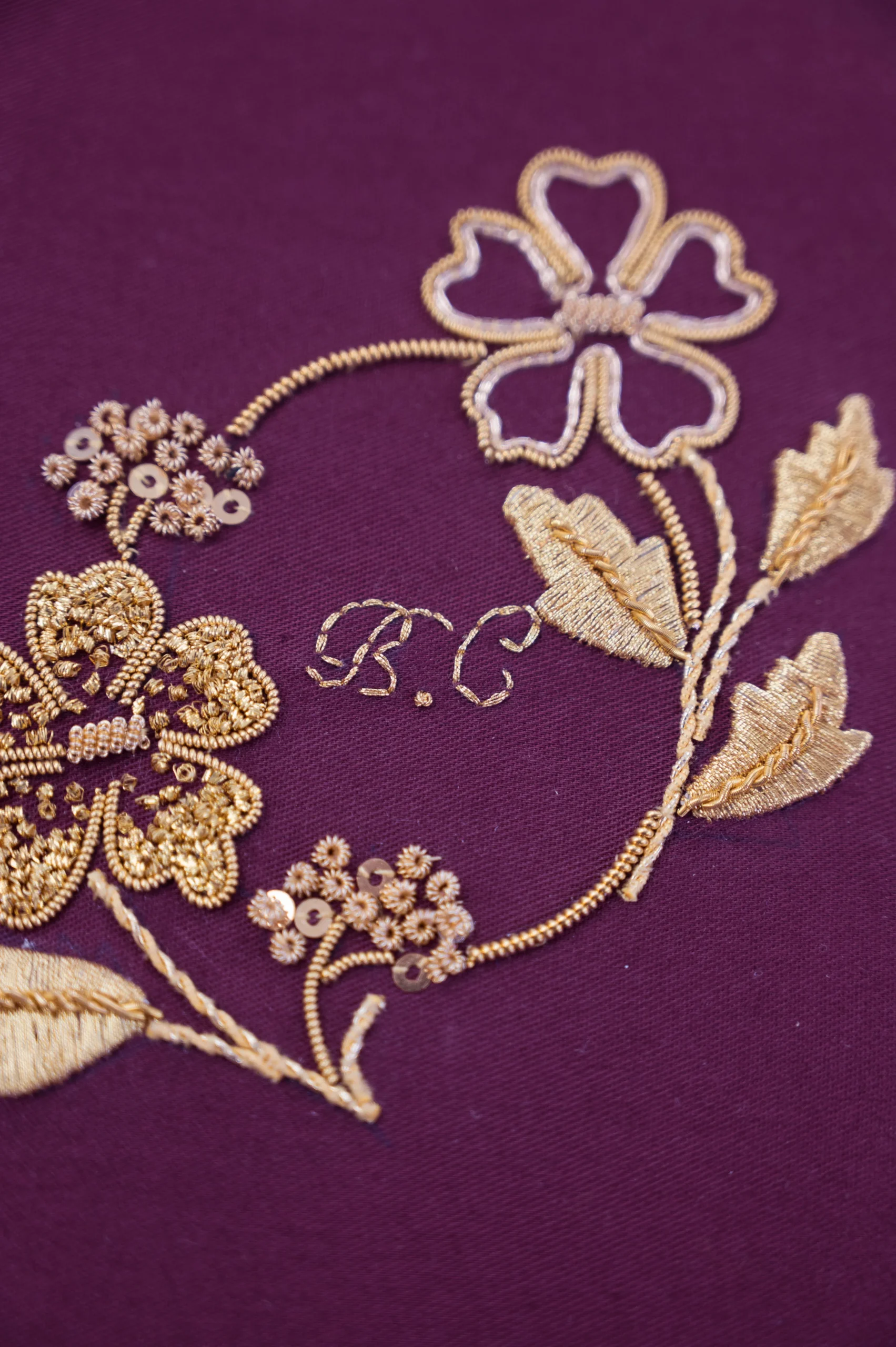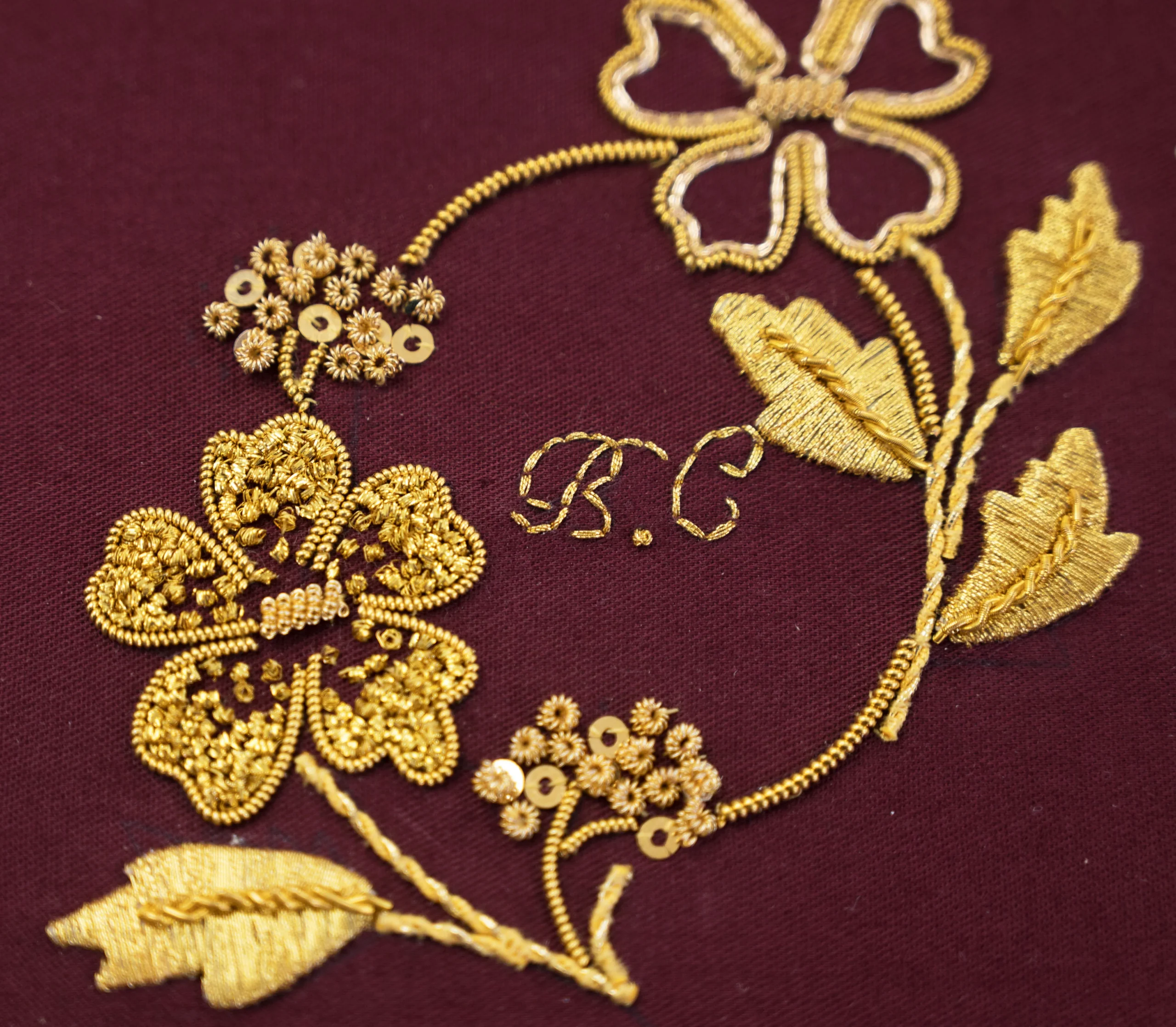In this five-day workshop, students will create a beautiful handmade notebook featuring a intricate floral design where goldwork embroidered flowers adorn the cover. This book can be personalised with the initials of your choice if you wish. Combining traditional embroidery techniques with bookbinding, this class offers a unique opportunity to learn both crafts in one project. This class is inspired by Beths most recent goldwork book “Verses of the Vine”. By the end of the class, you will leave with a finished goldwork embroidered notebook, along with the skills and confidence to continue exploring goldwork embroidery and simple bookbinding techniques at home.