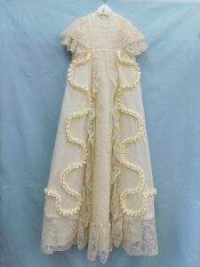 Cleaning Christening robes is always the first step in order to remove as many of the stains as possible. These stains often don’t show straight away, but after time the residue from the substance that causes the stain can become visible.