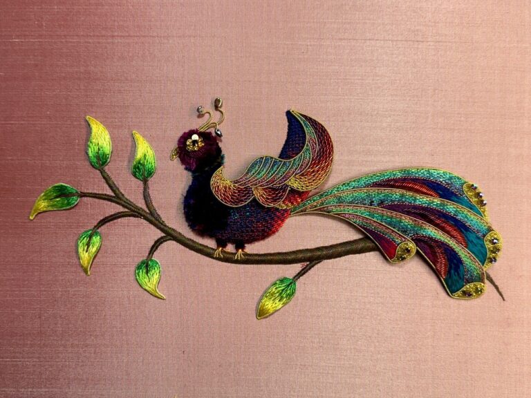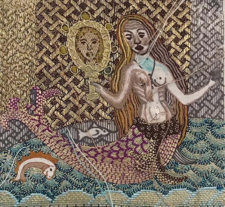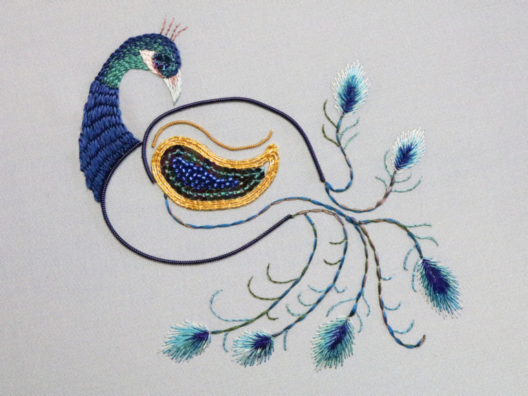 Her appliqué piece of Hampton Court Palace was featured in Made in Britain magazine, and her award-winning work, Peacock Mirror, was exhibited both at the RSN’s 150th-anniversary celebration exhibition and a London gallery.
