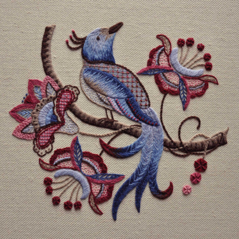 Helen now runs her business The Bluebird Embroidery Company and has completed several high profile commissions including one from the Royal Mail, Ely Cathedral and also designs and sells her own range of embroidery kits.