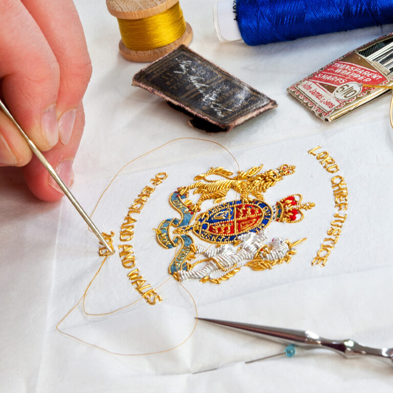 In 2023, Jennifer was honoured to be part of the Embroidery Studio team at the RSN that worked on several items for the Coronation of Their Majesties King Charles III and Queen Camilla.