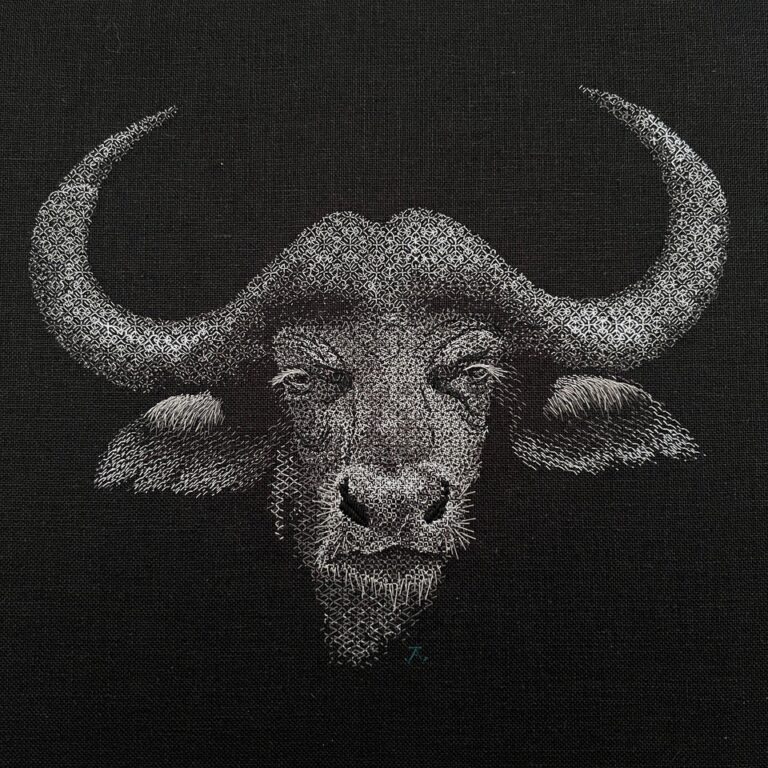 her students to achieve their creative aspirations. Her journey began with her mum, whose love for crafting ignited her fascination with needle and thread. Thanks to her mother’s encouragement and the skills she gained at school, she quickly discovered her love for sewing. This passion blossomed, leading her to an apprenticeship at The Royal School of Needlework, where she mastered traditional hand embroidery techniques. She also holds a BA Hons in Textiles & Fashion, which enriched her understanding of design, free-motion machine embroidery and fabric manipulation.