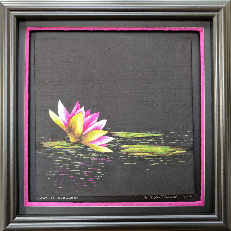 On June 1st, 2013, she moved into her permanent studio space at Walford Mill Crafts, where she now teaches a variety of courses and spends most of her time stitching intricate and highly detailed art embroidery pieces.
