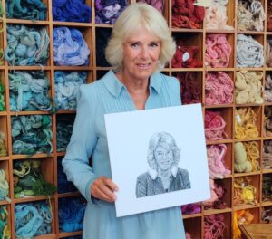 Over the years we have welcomed many famous faces and they all want their photo taken against this impressive backdrop to prove that they have visited the RSN Embroidery Studio at Hampton Court Palace!